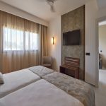 Le camere sono dotate di aria condizionata, Wi-Fi gratuito, TV satellitare, cassaforte, minibar, bollitore e balcone o terrazza. Con supplemento sono disponibili camere con vista mare parziale o vista mare frontale.